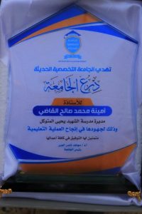 في لفتة تربوية وإنسانية مميزة، كرّمت الجامعة التخصصية الحديثة بالتعاون مع الشبكة اليمنية لأخبار التعليم مديرتي مدرستي الشهيد يحيى المتوكل والإزدهار النموذجية بمنطقة بني الحارث – صنعاء، وهما الأستاذة الفاضلة أمينة محمد صالح القاضي والأستاذة الفاضلة ناجية علي حسين قعيش، تقديرًا لجهودهما البارزة في دعم وتشجيع تعليم الفتاة.