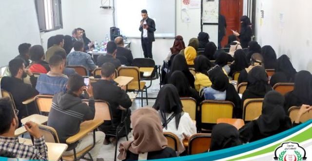 وقد أقيمت الفعالية برعاية الأمين العام وعمادة شؤون الطلاب بالجامعة‘ وبحضور عميد الكلية /عبدالملك سيف الصلوي وأساتذة اللغة العربية بالجامعة د/ أكرم ناصر د/ نسيم الكحلاني أ/ أفراح مهيوب أ/ بشرى العمادي