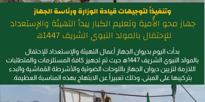 جهاز محو الأُمية وتعليم الكبار يبدأ أعمال التهيئة والإستعداد للإحتفال بالمولد النبوي الشريف 1447ھ