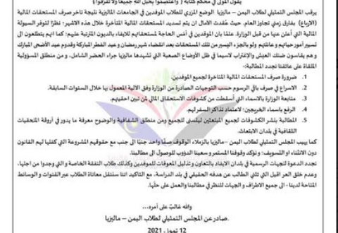 صادر عن المجلس التمثيلي لطلاب اليمن
