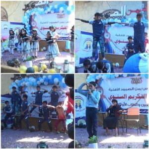 بدات الفعالية الاحتفائية بالقرآن الكريم ومن ثم…النشيد الوطني و الأوبريت الترحيبي من الزهرات ثم فقرة تمثل التراث اليمني وفن الاصاله اليمنيه كما القاء المقدمين المتالقين أ /هيثم البار والاستاذة / سميه النقيب كلمة باركا فيها لطلابنا النجاح والتفوق ، وبعد ذلك تعالت الزغاريد وبدأت زفه المتفوقين الذين صعدوا إلى منصة الشرف منصه العلم .
