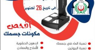 شبكة اخبار التعليم / صنعاء بمناسبة اليوم العالمي للغذاء ؛ يقدم قسم التغذية العلاجية والحميات بكلية العلوم الطبية بجامعة الملكة اروى، تخفيض 50% للفحص الكامل لمكونات الجسم ، وذلك خلال الفترة من 19 – 26 أكتوبر الجاري .