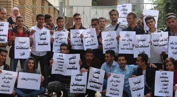 لوَّح الطلاب اليمنيين المبتعثين للدراسة في الخارج إلى تصعيد جديد في سياق برنامج الاعتصامات الطلابية السلمية الذي بدأ منذ أسابيع في الملحقيات الثقافية للمطالبة بمستحقاتهم المالية المتوقفة لأكثر من عام في ظل صمت وتجاهل متعمد من الجهات ذات الاختصاص .