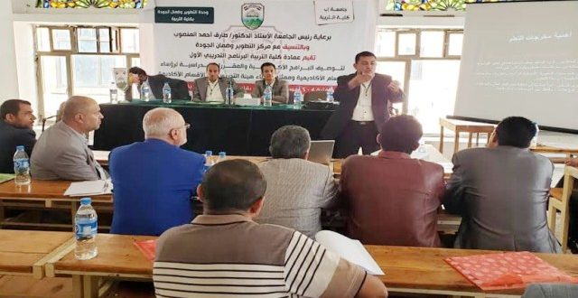 اختتمت اليوم بكلية التربية جامعة إب ورشة توصيف البرامج الأكاديمية والمقررات الدراسية التي نظمتها الكلية بالتعاون مع مركز التطوير وضمان الجودة.