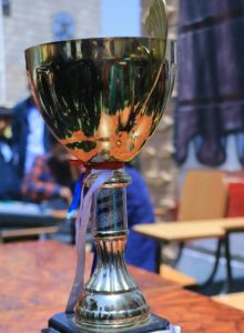 وقد سلم الكأس لهم بجو مليء بالحماس مع التصفير والتصفيق لما ابدو من مهارة في لعب كرة القدم.