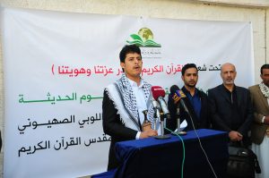 تحت شعار (القرآن مصد عزتنا وهويتنا)؛ نفذ طلاب وطالبات جامعة المعرفة والعلوم الحديثة بصنعاء، وقفتين احتجاجيتين (كلا على حدة)، عبرتا عن الغضب والاستنكار ضد جريمة الاساءة للمصحف الشريف في السويد من قبل احد افراد اللوبي الصهيوني .