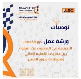 إنطلاقاً من إدراك جامعة الرشيد الذكية لمدى حجم الفجوة بين مخرجات التعليم العالي ومتطلبات سوق العمل في اليمن، وإيمانا منها بأهمية التخفيف من هذه الفجوة فقد نظم مركز اللغات والمهارات بالجامعة ورشة عمل بعنوان “دور الخدمات التدريبية في التخفيف من الفجوة بين مخرجات التعليم العالي ومتطلبات سوق العمل، والتي شاركت فيها العديد من الجهات والهيئات ذات العلاقة (منظمات المجتمع المدني – القطاع الخاص – القطاع العام) بهدف إقامة علاقات تعاون وشراكة بين مركز جامعة الرشيد للغات والمهارات وهذه الجهات لتفعيل دور الخدمات التدريبية في التخفيف من الفجوة بين مخرجات العليم العالي وسوق العمل.