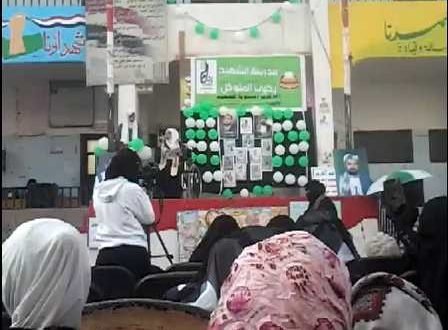 تحت شعار “شهــداؤنـا عظمـاؤنـا ” ، وبأشراف مباشر ومتابعة من مديرة المدرسة بالأستاذ / أمينة القاضي ، احيت مدرسة الشهيد يحيى المتوكل ببني الحارث فعالية احتفائية مميزة بالذكرى السنوية للشهيد ، و بحضور أ/نجلاء المهدي مسؤول شنون الطالبات بمكتب التربية و أ/عاتقة ابو طالب مختصة أنشطة الطالبات بالمنطقة و أ/اسماء الشرفي مديرةإ دارة تنمية المرأة ومشرفة بمديرية بني الحارث و أ/إجلال مطهر منسقة بني الحارث و أ/اية عبدالله من المنطقة التعليمية و أ/عفاف الصادق ثقافية مديرية بني الحارث و أ/فايزة حميد ثقافية الحي و نجود النجدي ثقافية المدرسة و أ/مكية صلح مشرفة حي الحما والطيران وكادر ومعلمات وطالبات المدرسة وبعض أمهات الطالبات .