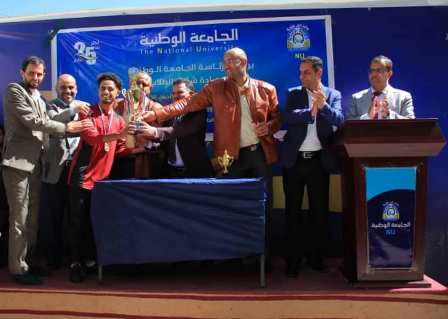 مدير نادي أكاديمية المحترفين ، الذي عبر عن شكره وأمتنانه للجامعة الوطنية وإدارتها وطلابها على ما أبدوه من حسن سلوك وماتعاملوا به من روح رياضية واخلاق راقية خلال الدوري الرياضي .