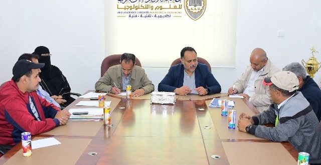 عقد أ.د.م / عبدالرحمن مبخوت الذانبي رئيس مجلس أمناء جامعة الاكاديميين العرب للعلوم والتكنولوجيا، و بحضور أ.د / عامر محسن الصبري رئيس الجامعة اليوم 9 شعبان 1444هـ الموافق 1 مارس 2023م اجتماعاً مع فريق عمل بطولة الجامعات اليمنية لكرة الطائرة على كأس الرؤية الوطنية التي تنطوي ضمن فعاليات المسابقات التنافسية العلمية والثقافية والرياضية، و التي تنظمها وزارة التعليم العالي والبحث العلمي للعام الجامعي 1444هـ ، وبمشاركة مفتوحة من 32 فريقاً من مختلف الجامعات الحكومية والأهلية.