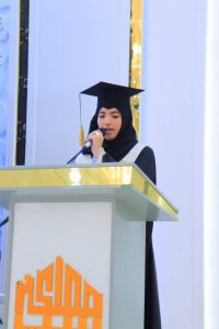 “إن التخرج ليس نهاية المطاف، بل بدايته الحقيقية. تعلمنا هنا كيف نواجه الحياة، وكيف نصنع من كل تحدٍ فرصة، ومن كل سقوط بداية جديدة. نحن اليوم لا نحمل شهادات فحسب، بل نحمل رؤية وأمل ومسؤولية. نعاهدكم أن نكون أهلاً لما تعلمناه، وأن نرفع راية العلم والأخلاق في كل مكان نحلّ فيه.”