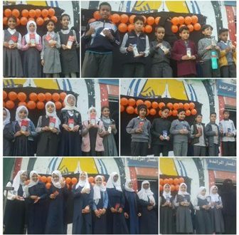 وفي اخر المسابقه قمت ادراة المدرسه بتكريم الطلاب والطالبات بجواز قيمه التحفيز