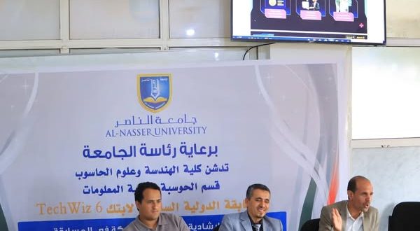 برعاية كريمة من رئاسة جامعة الناصر، دشنت كلية الهندسة وعلوم الحاسوب – ممثلة بقسم الحوسبة وتقنية المعلومات – فعاليات المسابقة الدولية السادسة لابتك TechWiz 6، التي تهدف إلى تحفيز طلاب الجامعة على الإبداع وصقل مهاراتهم في مجالات التقنية الحديثة.