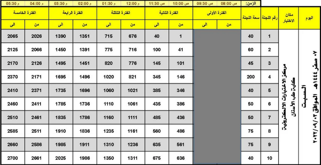 يوم السبت + الاحد (للطلاب المتقدمين للتخصصات الطبية وعلومها)