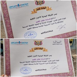 كرمت الشبكة اليمنية لاخبار التعليم المسؤولة الإعلامية بمدارس ذهبان النموذجية الأستاذة / افتكار محمدالأفجم  شهادة  شكر و تقدير ، نظير جهدها الاعلامي في تغطية الفعاليات والأنشطة المدرسية   المختلفة لمدارس ذهبان النموذجية خلال العام  الدراسي 2020-2021 م ، ومشاركتها في الدورة التدريبية الخاصة بصحافة التعليم  التي نظمتها شبكة اخبار التعليم .