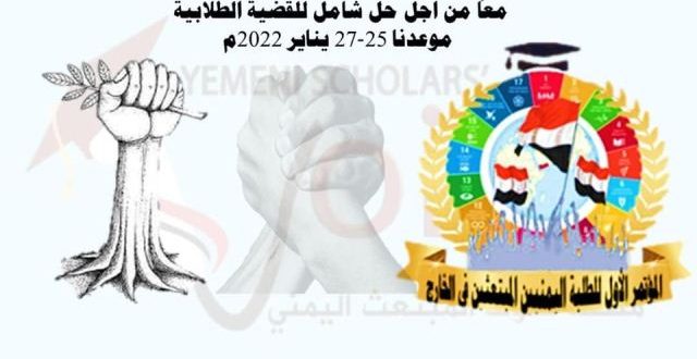 داعيين المبتعثين للدراسة في الخارج إلى المشاركة والتفاعل الإيجابي في المؤتمر الأول للطلبة اليمنيين المبتعثين في الخارج الذي سينظم تحت شعار ” معاً من أجل حلٍ شامل للقضية الطلابية والمساهمة في تنمية الوطن” والذي من المقرر انعقاده خلال الفترة (25-27 يناير الجاري)، وسيناقش العديد من المحاور أبرزها القضية الطلابية في ضوء القضية الوطنية، وقانون الابتعاث –الحقوق والواجبات، والمستجدات في آلية الابتعاث الحالية، ودور وسائل الإعلام في تغطية القضية الطلابية، وكورونا وطلاب الابتعاث، واستعراض التوصيات والحلول المقترحة، وكذا دور الطالبات في الحراك الطلابية وتنمية الوطن، والطلاب المبتعثين والمساهمات الابداعية، والدور المؤسسي في استيعاب مخرجات الابتعاث، وهجرة الكوادر اليمنية، وتفعيل مخرجات الابتعاث نحو منظومة علمية حديثة.