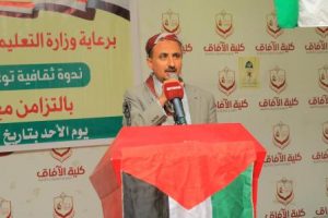 وأعتبر نائب وزير الإرشاد وشؤون الحج والعمرة فؤاد ناجي، الفعالية جزء من الجهاد في سبيل الله لنصرة الأقصى الشريف، مشيراً إلى أن موقف اليمن المساند للشعب الفلسطيني هو تعبير عن الإيمان والحكمة التي يتصف بها الشعب اليمني العظيم.
