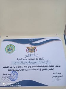 مدرسة سام  تكرم الطالب حسين القارح لحصوله على ٩٥,٢٩٪ في المرحلة الأساسية