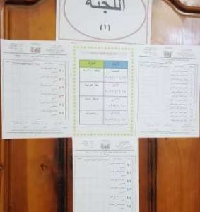 و قد تم تجهيز قاعات الاختبارات بكل مايلزمها من اسماء اللجان وكشوفات المناداة و الجداول و ارقام الجلوس لكل الطالبات ، وتم تثبيتها على المقاعد الدراسية.