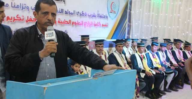 بدوره أفاد عميد الكلية الدكتور نصر الموسمي ان الخريجين هم من تخصصات مساعد طبيب ومختبرات وصيدلة وقبالة وتوليد “بعد اجتيازهم ثلاث سنوات من التحصيل المنتظم”.