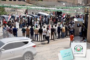 رفع المشاركون الأعلام اليمنية والفلسطينية ولافتات تدين العدوان الغاشم على قطاع غزة.