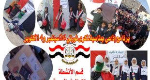شبكة اخبار التعليم / عواد صالح الطيري تحت شعار “كلنا للوطن والوطن لناكلنا” أقامت مدارس أشبال اليمن الحديثة صباح اليوم الأربعاء برنامج اذاعي عن ثورتي 14 اكتوبر و 26سبتمبر تخلل البرنامج الاذاعي العديد من الفقرات المميزة والجميلةوالذي بدأ بأيات من الذكر الحكيم ثم الحديث النبوي الذي يحث على حب الوطن …