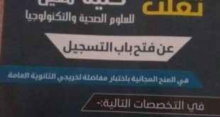 اعلنت كلية معين للعلوم الصحية والتكنولوجيا في منطقة بني الحارث بصنعاء عن  استمرار  فتح باب التسجيل والقبول  للعام الدراسي الجديد ،  وذلك في الأقسام التالية : قبالة وتوليد إدارة اعمال تمريض مختبرا حاسوب فسارعو ا لحجز مقاعدكم فالمقاعد محدودة (كلية معين للعلوم الصحية والتكنولوجيا.. ضمان المستقبل لسوق العمل) العنوان : …