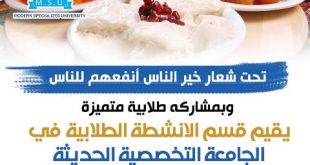 أكمل القراءة »الجامعة التخصصية الحديثة :اقامة《الطبق الخيري الاول》 لصالح دار رعاية الأيتام.. غدا