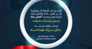 الجامعة الوطنية تبارك لطلبة الصيدلة اجتياز امتحان مزاولة المهنة