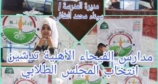 شبكة اخبار التعليم / صنعاء دشنت مدارس الفیحاء اليوم الأربعاء، إنتخابات مجالس الفصول الطلابية، وقد تمت الانتخابات بسلاسة ودیمقراطیة حيث توفرت فیهم صفات قیادیة سلوکیا وتعلیمیا تکللت العملیة بنجاح تم فرز الأصوات من قبل لجنة التحکیم التالیة أسماٶهم مدیرة المدرسة /سیناء النفافي وکیلة المدرسة /هدی الهبیط الأخصائیة / منیرة الجعدلي …