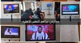 شبكه التعليم / ريم السنباني إقام بمدارس براعم النصر الأهلية اليوم ، برنامج ثقافي للسيد القائد عبد الملك الحوثي . حيث تم عـــرض المــــادة الثــقافـــيه حضــور وكــيلة المدرسه وبحضور متابع مربع فلسطين التربوي في حي المطار وكــادر المـــدرسة مــن معــلمين ومعلـــمات .