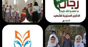 شبكة اخبار التعليم / حنان حميد انطلق مجموعة من طلاب وطالبات الصف الثالث فصل الشهيد جمال ناصر ( ابو بشار) بمدارس رحاب العلم الأهلية اليوم ، بزيارة لاسرة الشهيد صالح حمد النمس (ابو سعد) . وقد التقى الطلاب والطالبات بأم الشهيد وتحدثوا معها عن ماثر وبطولات الشهيد الجليل و ما …